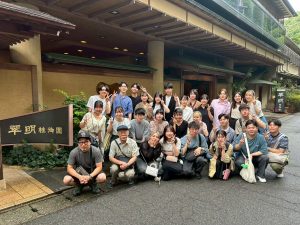 本年度の研究室旅行には30名が参加しました。猛暑の中、初日は竜ヶ洞(浜松市)の冷気を堪能。静岡SAで昼食後、富士サファリパーク見学。雨が降ってきましたが、バスに乗ったままの異動で問題なし。猫の家や犬の家では動物と戯れました。伊豆畑毛温泉大仙家泊、夕食後は裏庭で花火。蝉がたくさんいてビックリ。二日目は箱根町散策、参加者の一部は遊覧船で涼風を楽しんだり、みたらしアイスを堪能したり。沼津港で散策と昼食。暑さ対策で入った水族館は深海をテーマにした大人でも十分楽しめる展示でした。18時過ぎ無事大学に到着しま